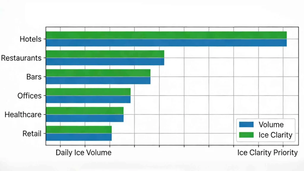 Core Need: Supporting patient care (therapy, cooling), dietary services, and staff cafeterias. The highest standards of sanitation, reliability, and sometimes specific ice textures (like chewable nugget ice for patients) are required.